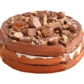 3 Layers of Belgian waffles, Nutella chocolate, white chocolate, flutes chocolate, Cadbury chocolate, oreo, snickers chocolate, Maltesers chocolate and hazelnuts